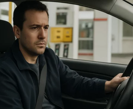 Un homme bloqué dans une station-service et arrêté au volant